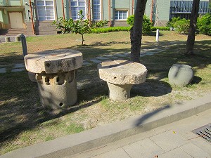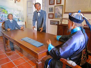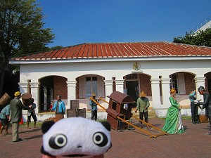 哈瑪星地区(ハマシン) 日本統治時代、このあたりには多くの日本人が住んでいました。 また昭和天皇が皇太子として高雄に行啓された時の駅なども残っています。 歴史的な建物と現代建築が同時に見られる興味深い場所でもあります。 ![]() 旧高雄駅 旧高雄駅です。 現在の名称は『高雄願景館(たかおがんけいかん)』です。 改修中で中を見学することはできません。 ![]() 旧高雄駅 駅前からまっすぐ伸びる道を見ています。 広々としています。 ![]() 旧高雄駅 横から旧高尾駅を覗いてみました。 ガレキが入った袋が散乱しています。 補修の状況はどんな感じなんでしょうか。 ![]() 旧高雄駅 後ろから見ると古びている様子が良く分かります。 意外とこじんまりとしています。 ![]() 旧高雄駅 これは高雄市立歴史博物館の庭に配置・展示されていた、旧高雄駅の貴賓室の床です。 モザイクタイルのピンク地と花の白が上品です。 旧高雄駅の2階は駅長室と貴賓室がありました。 今は老朽化で人の重みにも耐えられないそうで立ち入り禁止となっています。 ![]() 高雄市立歴史博物館 高雄市立歴史博物館です。 日本統治時代に造られました。 この門柱はオリジナルなのか気になっています。 ![]() 高雄市立歴史博物館 クリームソーダのような緑色と薄いオレンジ色が可愛らしいです。 ![]() 高雄市立歴史博物館 敷地を歩いていたら「石臼」を見つけました。 イスやテーブルとして再利用しているみたいです。 水車で使われていたような歯車の跡がのこっているものもあります。 ![]() 高雄市立歴史博物館 この状況を説明するような案内板もないのが残念です。 石臼マニアさん大歓喜な場所なのにもったいないです。 ![]() 高雄市立歴史博物館 この石臼の目は渦を巻いていてキレイですが、何を挽いたんでしょうね。 ![]() 高雄市立歴史博物館 中央階段です。 優雅、優美、とても美しいです。 ![]() 高雄市立歴史博物館 廊下です。 こちらも華やかです。 ![]() 高雄市立歴史博物館 第二次世界大戦の時、連合軍の爆撃に遭い高雄も被災しました。 軍需関連の施設が多かっため目標にされたそうです。 ![]() 高雄市立歴史博物館 「備へあれば憂ひなし 見誤るな敵機の標識」 一番下は太陽マークで重慶と書いてあります。 ![]() 高雄市立歴史博物館 天井の様子です。 高いです。 ![]() 高雄市立歴史博物館 二・二八事件の常設展示です。 この博物館で起こった悲惨な事件をジオラマで再現しています。 また15分間の人形アニメーションも上映していて、より詳細な解説となっています。 この博物館で命を落とした方たちのご冥福をお祈りいたします。 ![]() 旧打狗駅故事館 昭和天皇が皇太子時代に降り立った高雄駅はここになります。 見学自由です。 ![]() 旧打狗駅故事館 当時の駅舎の雰囲気が残っています。 オミヤゲなども売っていました。 ![]() 旧打狗駅故事館 黒板と記念品の展示です。 ![]() 旧打狗駅故事館 ホームです。 中央にある狭いドアが出口となります。 天井からぶらさがっている駅名が右から左になってますね。 ![]() 打狗英国領事館 等身大のマネキンが置かれている、めずらしい場所です。 当時の賑わいが感じられます。 っていうか、台湾の人はマネキン展示大好きですね! 私も好きです。 ![]() 打狗英国領事館 室内では英国人と清から派遣された役人の交渉シーンが再現されていました。 役人の装束に興味津々です。 映画キョンシーでよく見る衣装ですね。 でも帽子に孔雀の尾羽がついていて、なかなかゴージャスです。 ![]() 打狗英国領事館 この胸についている四角いアップリケは「補子(ほし)」と呼ばれ、官位をあらわしているものです。 「鳥」なので文官ですね。 鳥の種類が分かれば階級も分かるそうです。 ![]() 打狗英国領事館 裏庭は薔薇園になっていました。 地中に残る遺構を見学できるようになっています。 ![]() 打狗英国領事館 領事の公邸は山の上にあります。 この急な階段を登ります。 ![]() 打狗英国領事館 公邸 領事の公邸です。 見晴らしの良い高台にあります。 アイスクリームやオミヤゲを売っています。 ![]() 打狗英国領事館 公邸 資料館もあります。 ![]() 打狗英国領事館 公邸 ここの展示に鳥居龍蔵先生ことを伝えている雑誌がありました。 先生が撮った丸木舟の写真が貴重であると書いてありました。 先生は多くの先住民の写真を撮っていたため、昔の生活様式を知るための貴重な資料となっています。 ![]() 哈瑪星地区 哈瑪星地区は多くの日本人が住んでいました。 そのため散策すると古い日本家屋を見かけます。 こんなふうに手すりがあるのは料亭でしょうか。 そもそも港町なので、そんな造りの家も多かったと思います。 ![]() 哈瑪星地区 この杉板の壁を懐かしく感じてしまいます。 台風の多い島なのに古い壁が残っていることに驚きです。 ![]() 鼓山渡輪站 旗津へ向かいます。 15分ほどの船旅になります。 ![]() 旗津老街 観光客目当てのお店が多いです。 老街を抜けて砂浜で海を見て、そのまま戻っ