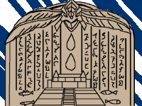 | この日輪はメソポタミアあたりが発祥の地らしく、古くから神聖視されていました。 このデザインがエジプトに伝わり、翼を持つトコロからホルス神と同一視され、石板を守護する護符図となったようです。 基本は一羽のハヤブサをあらわしているので、羽は一対です。 ■さて、ドーマ編に登場したこの石板の上部はちょっと変わっていて、翼の部分が『2枚』になっています(多分…)。