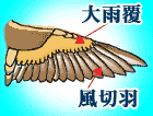 ![]() | ★図章と鳥の身体を比べてみる! 大型鳥の羽は図のようになっています。 『雨覆』 と 『風切羽』 を図案化すると、護符絵のようなデザインになります。 これを見る限り、アトランティス風 『有翼獣顔』 の翼部分はやはり、「翼」というより『ヒレ』ですねぇ〜。 |