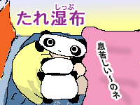 ![]() 【今日のクロたれとノスたれ】 鮎川先生がクロノス先生に急接近! クロノス先生は独身だし、ひょっとして恋が芽生えちゃうかも!! ドキドキ★しながら二人の様子を見守るクロたれとノスたれ… でもクロノス先生のだじゃれについていけない鮎川先生を見てまだまだ修行が足りないと思うクロたれとノスたれであった でも体育の授業のたびにケガをするクロノス先生… 今は打撲程度ですんでいるけれど… この先、どんな災難に見舞われるか分からない! そっと生命保険会社に見積もりのメールを打つクロたれとノスたれ… でもパンダは保険金の受取人になれませんっ! 残念っ!! | 青アザの目を柔らかい腹で湿布! でも先生は息苦しそう… たれぱんだの身体は、「意外としっとりしている」「腹はなめらか」「意外と暖かい」ので、生きた湿布みたいです。 クロノス先生のために必至に世話を焼くたれちゃんに萌え萌えです。 2005年01月13日(木)−第15話「青春のデュエルテニス」 |