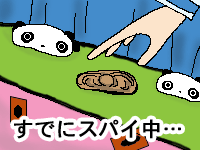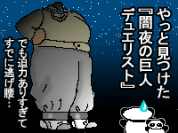 ![]() 【今日のクロたれとノスたれ】 『闇夜の巨人デュエリスト』の事をずっと気にしているクロノス先生。 十代たちが「謎のデュエリストなんていなかったよ!」と言い張るし、盗まれたレアカードも生徒の手元に戻ってきたので、もう誰も謎のデュエリストの事を話題にしなくなってしまった…。 でもクロノス先生の心の中には、すっきりとしないモノが残ったらしい そんな先生に代わり、真実を突き止めるために動きだしたクロたれとノスたれ! 手がかりは、「雲をつく大男らしい」という事だけ! レアカードに残る匂いを追って、たどり着いたその部屋で見たモノは!! 次回 : 蜘蛛を突く大男…………想像さえしたくない!!!!! | 正体を暴くなんて、とても無理… 小さいパンダと大きな大原くんを一枚の画面に収めるのに苦労しました。 蜘蛛を突く大男…想像しただけでも、ヤメテェ!!ヽ(゚∀゚)ノって感じです。 でも私はそれほど蜘蛛は嫌いじゃないです。 2005年01月20日(木) −第16話「闇夜のキングゴブリン」 |