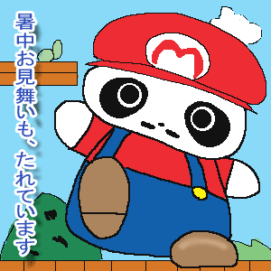 スーパー”たれ”マリオ登場!! 暑中見舞いのつもりで作りましたが、暑苦しい絵になってしまいました。 ヒゲを描くか悩みましたが、ヒゲのないマリオはマリオじゃないので、ちょび髭みたいですが、つけることにしました。 このゲームは最初に買ったファミコンで、攻略本を見ながら全面クリアしました。 海の中を泳ぐマリオが好きです。 |