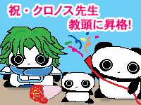 ![]() 【今日のクロたれとノスたれ】 ついにクロノス先生が教頭になった!!! クラッカーを鳴らしたり、お花を用意したり… クロたれとノスたれも大喜びなのだ! 昇格祝いのパーティーを準備していると、見知らぬ少年がやってきた… 「ボク、藤原たれ介です…(´ω`*) よろしく♪」 忙しくててんてこ舞いだったので、クロたれとノスたれも大歓迎なのであった! さっそく目から火を出せるらしいので、鳥の丸焼きを焼いてもらうことに。 容赦ない指示に、ちょっと涙目の藤原たれ介であった… |