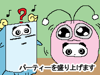 ![]() 【今日のクロたれとノスたれ】 デュエル・パーティー開始!!! 3年生を招いて楽しんでもらおうというのが目的なので1年生も大張り切り! しかし着ぐるみ担当が暑さでダウンしてしまった! そこでクロたれとノスたれが手伝いに参加したのだった! ちょっとサイズが合わないので、ふわふわと動くのが精一杯! でもその動きがあまりに可愛いと、なぜか生徒に大好評! ちょっと疲れてきたけれど、頑張って踊ってしまう2匹であった… |