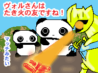 ![]() 【今日のクロたれとノスたれ】 寒くなったので、たき火をしようとしたクロたれとノスたれ… でもマッチを忘れたことに気がついた! そこへちょうど通りかかったヴォルカニック・エッジさん 2匹が困っているようなので、気軽に火をつけてくれたのだった! あっという間に薪に火がついてビックリしているクロたれとノスたれ これで身体も暖まるな…と思ったけど、ヴォルカニック・エッジが側に来ただけで、 すっかりぬくぬくになってしまった2匹であった… |