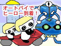 ![]() 【今日のクロたれとノスたれ】 ミスターTはいつも突然現れるので、十代警備隊のクロたれとノスたれは大忙し! 常に十代の動向に気を配らなければならないのであった! しかし、今日はうっかり誰かにさらわれてしまった! さっそくジェットエンジンを積んだオートバイで十代を追いかけるのであった! でも道に迷っちゃって、どこへ行けばいいのか分からなくなってしまった! ちょうど運良くアルカナフォースレベル7さんが通ったので、十代の行方を尋ねてみた! 言葉で言えないから、手で方向を指してくれるのだが、たくさんある腕がクニャクニャ動いて、方向が定まらない! どっちへ行ったらいいのか、迷う2匹であった… |