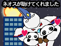 ![]() 【今日のクロたれとノスたれ】 KCビルが大爆発! 斎王サマと十代のデュエルをノンビリ見物していたクロたれとノスたれ! うっかり逃げ遅れ、気がつけば火に取り囲まれていたのだった! そこへ颯爽とあらわれた、ヒーローネオス! ササっと2匹を抱きかかえると、アッという間に燃えさかるビルから無事に脱出させたのだった!! 爆発に巻き込まれなくてホッとするクロたれとノスたれ でも、もっと嬉しいのは、ネオスに抱っこされて空を飛んだことなのだった… |