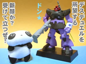 ![]() | ドム人形を洗ったついでに作成してみました。 ソフトビニールの人形は、意外と汚れがつくので、時々、洗剤液に浸して、ブラシこすりして汚れを落とします。 腕に巻いた「デスベルト」も作るのが面倒でした。 |