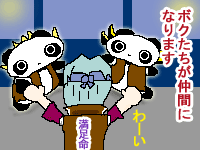 ![]() 【今日のクロたれとノスたれ】 ジャックとクロウが去り、遊星までも去ってしまった鬼柳さん 「一人じゃ可哀想だよ!」 と心配するクロたれとノスたれ 自分たちがジャックと遊星の変わりになろうとさっそく鬼柳のところへ乗り込んだ! どうせなら、満足同盟のベストを作り、髪型も二人に似せて、鬼柳の心を癒そうと努力するのだった! 一人で寂しい思いをしていた鬼柳さん 2匹の優しさに嬉しくて泣きそうなのであった… |