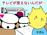 ![]() 【今日のクロたれとノスたれ】 遊星はブレオを倒し、今はジャンと闘っている! 白熱したデュエルも気になるけれど医務室に運ばれたジャックも気になる! とりあえず病室へお見舞いに行くクロたれとノスたれ。 ジャックはやっと目を覚まし、遊星のデュエルを鑑賞中だった! ジャックのお見舞いに来たハズなのにテレビのデュエルに釘付けのクロたれとノスたれ あまりにテレビに近づいているので、画面が見えないジャックであった… |