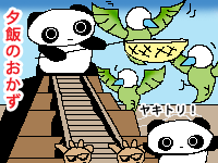 ![]() 【今日のクロたれとノスたれ】 南米へと旅だった遊星とジャック せっかくのラブラブ旅行をジャマしたくなかったけれど、イリアステルのこともあるし…と、こっそり同行するクロたれとノスたれ しかし荒野のボマー邸は人里離れていて、夕飯を取るレストランさえ見つからないのであった 仕方なく現地で材料を調達することにしたクロたれとノスたれ 虫取り網を用意して、『フリーバード』を捕獲しようと頑張るのであった! ノンビリしているように見えた『フリーバード』だが意外と機敏に逃げ回る… そろそろお腹が空いてきて、もう泣きそうな2匹であった…が、実はボマーさんが大粒の茹でトウモロコシを用意して待っているのであった… |
