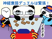 ![]() 【今日のクロたれとノスたれ】 遊星がクラークと始めた神経衰弱デュエル! 通常のデュエルと違うルールと戦術に興味を持ったクロたれとノスたれ! さっそく自分たちも遊星に挑戦したい! こっそりクラークに変装したクロたれ その変装があまりに上手だったので、遊星はクロたれをクラークと信じ込んでしまったのだ! デュエルは白熱し、ついに互いのカードも数枚となってしまった! あまりの緊張に、顔が真っ赤になってしまった遊星であった… |