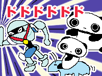 ![]() 【今日のクロたれとノスたれ】 ジャックが召喚した「トップランナー」 うわばきと胸のメダルが目立つ、粋なモンスターなのだ! カッコ良く走る姿に惚れたクロたれとノスたれ お友達になろうと彼の後を追いかけるのであった! 彼のスピードに追いつけず、必死に走るクロたれ ノスたれは、仲良くなった 「タングリスニ」 に乗って優雅に追いかけるのであった… |
