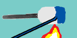 ![]() ←金属棒に耐火粘土で作った型をとりつける ガラスを火であぶりながら、ガラスを粘土の上に塗りつけていく−−→ 外側のガラスが冷えたら、中の粘土を掻き出して完成。 上図のような縞模様は、色の違うガラスを細く巻き、スッッと引っ掻いて波模様をつけます。 |