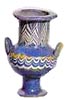 ←(写真はアニメに出てきた「記憶の器」を意識してみました)■もともとガラスは、『古代メソポタミア』 で作られました。 けれど「ガラス製品」として使用されるようになったのは古代エジプトだったので、世界最古のガラス製品として資料の最初に紹介されているのはエジプトのモノがほとんどです。 ■王様が生きていた新王国時代になると大量に作られるようになりましたが、それでもガラスはとても貴重なモノで、市民が簡単に手に入れたりすることはできませんでした。 ■王様(スメンクカーラー王)が暮らしていたアマルナ王宮内には王室専属のガラス工房があり、ここで王族が使用するガラス製品が作られていました。←写真は当時のガラス製品で、香油入れなどに使われたと思われます。 私たちが思い浮かべる透明なガラス製品とは違い、新王国時代のガラス製品はこのように不透明で、ボッテリとした作りになっています。 その原因は製造方法にあります。 |