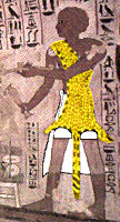神殿へ入るには、まずPYLON(塔門)と呼ばれる、二つの大きなオベリスクに守られた門をくぐり抜けます。すると三方を列柱で囲まれた、屋根のない広い中庭に出ます。 参拝者はこの中庭から多柱室に入ります。 この巨大な柱が並ぶ部屋には天井があるため、外からの光は高い位置につけられた小窓を通じてしか入ってきません。 薄暗い回廊に巨大な柱が立ち並ぶ様はちょっと怖いですねぇ。 神殿の最奥は神を祀る至聖所です。 この部屋は狭く奥行きの深い部屋で、窓がないため、真っ暗なので、神に奉仕する際は火を焚いたりしました。 ここには王と職務についた一人、あるいは数人の神官だけしか入ることのできない神の個室でした。 (逢い引きするにはちょうどいいかも (*^_^*) (不謹慎かな!?)) 至聖所の周囲には、神の宝物や食べ物・衣服・香料などを収めた部屋がいくつもありました。 神殿の建物と周壁との間には、聖職者たちの住まいや工房や庭園、そして聖池などがありました。 ■服 ![]()